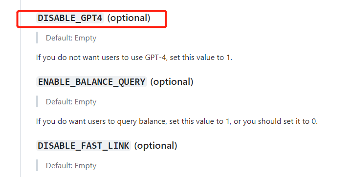 我们部署了两个站点: gpt.xxx.com和gpt4.xxx.com,前者使用了这个DISABLE_GPT4的参数,大家无法再选用GPT4的模型了,部署命令如下: